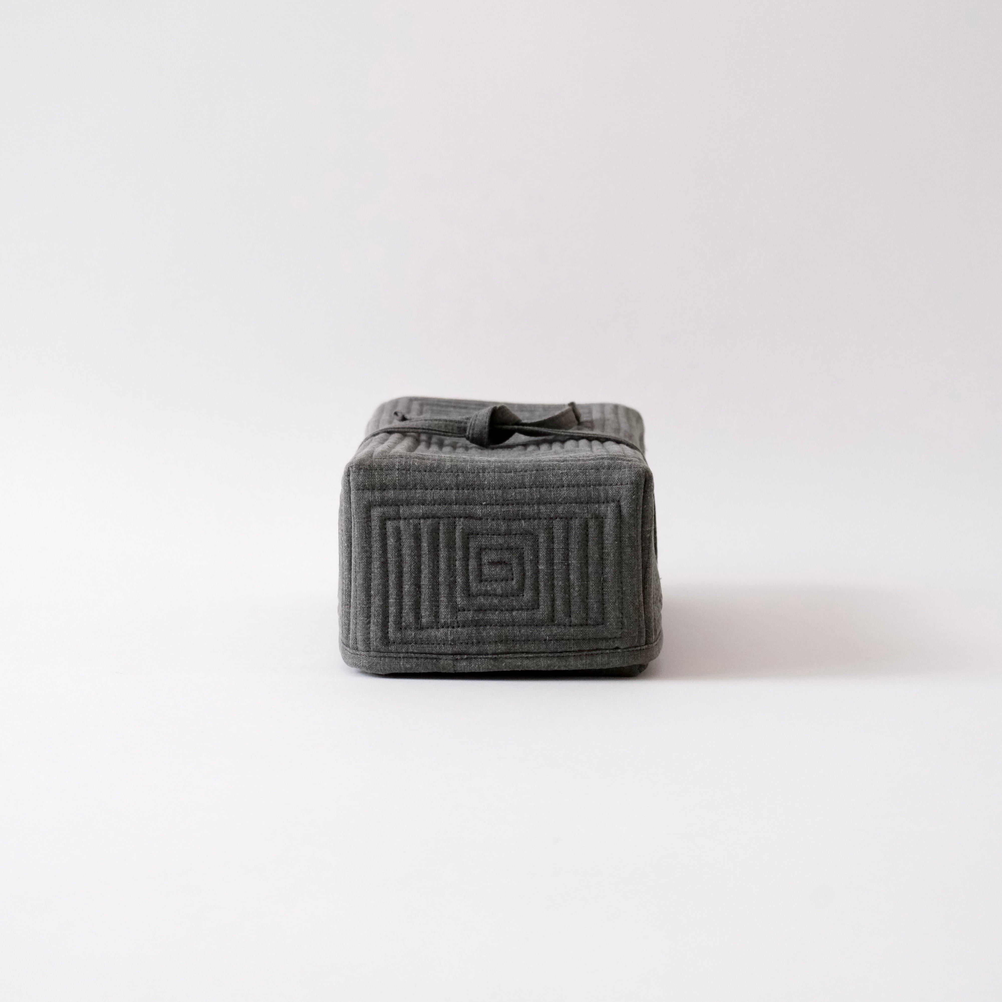 簡単に作れそうに見えるかもしれませんが、厚手の生地の間に木綿の紐を挟み込み、表と裏の線を見ながらゆっくりとミシンを走らせる作業は、見た目には伝わりづらい精神力が必要とされます。