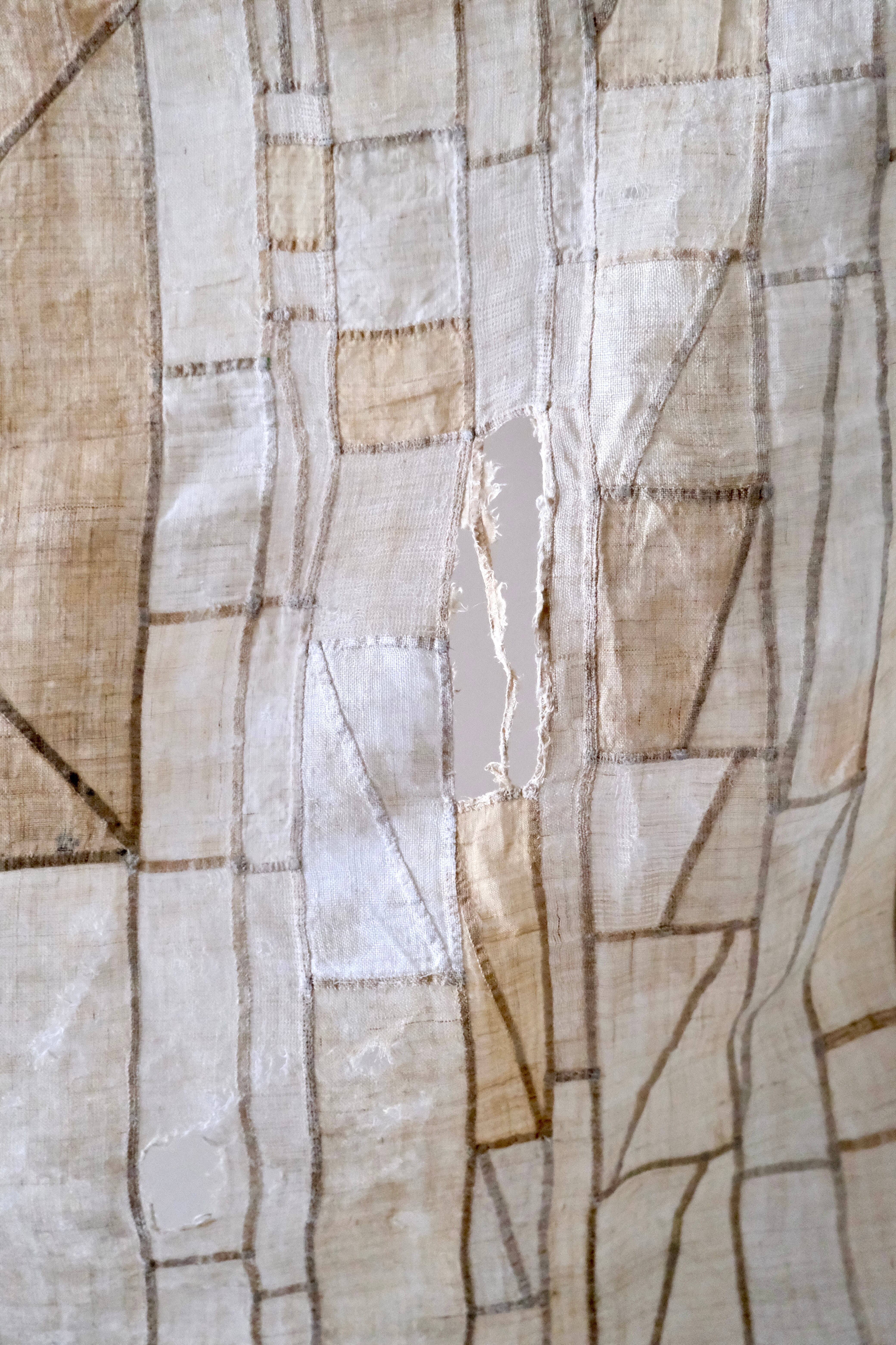 一針一針がとても細やかに丁寧に作られ、経年により生じた破れや穴のあいた枯れた雰囲気が、このチョガッポの表情となっています。