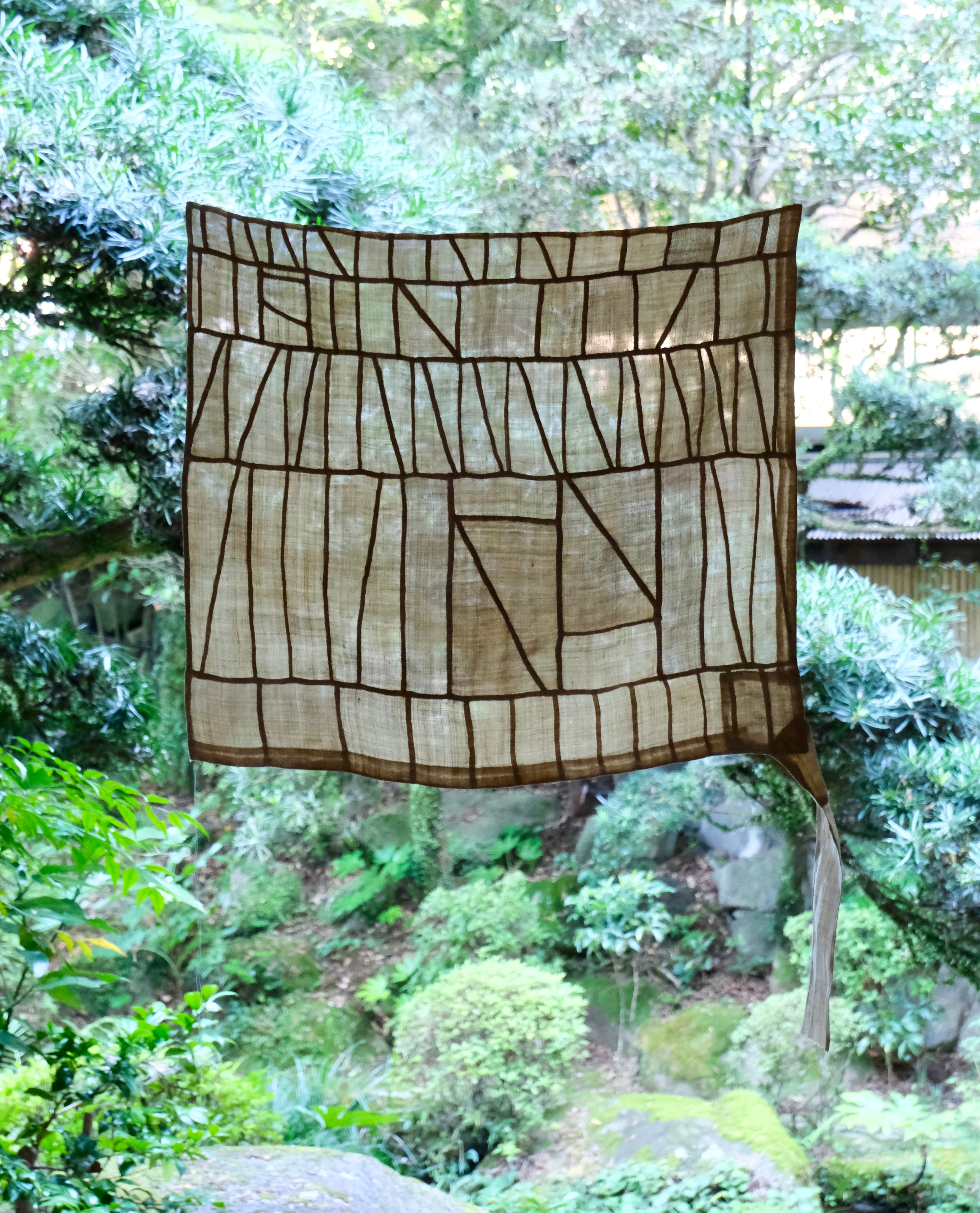 四つ角のひとつに紐が付いています。約38cm