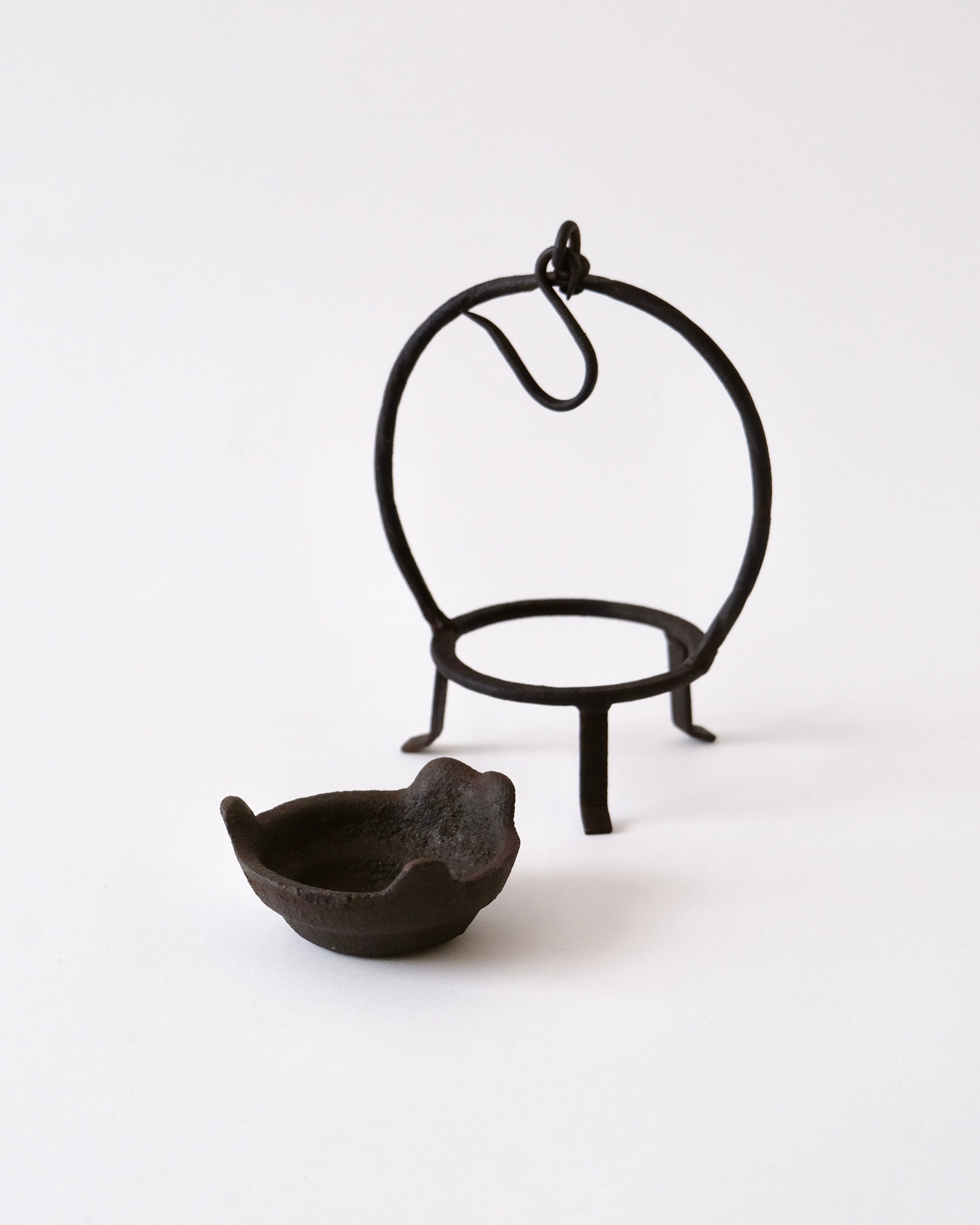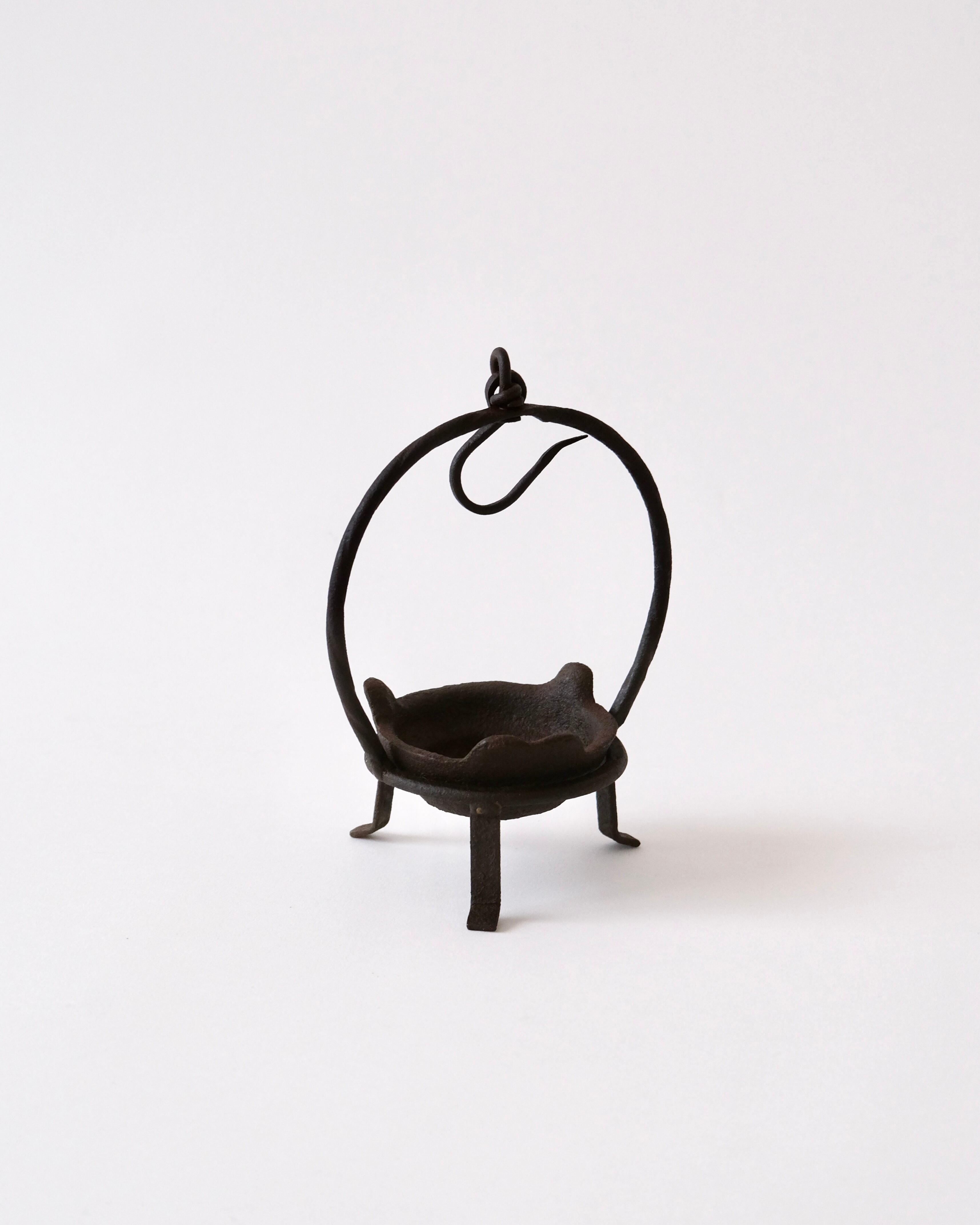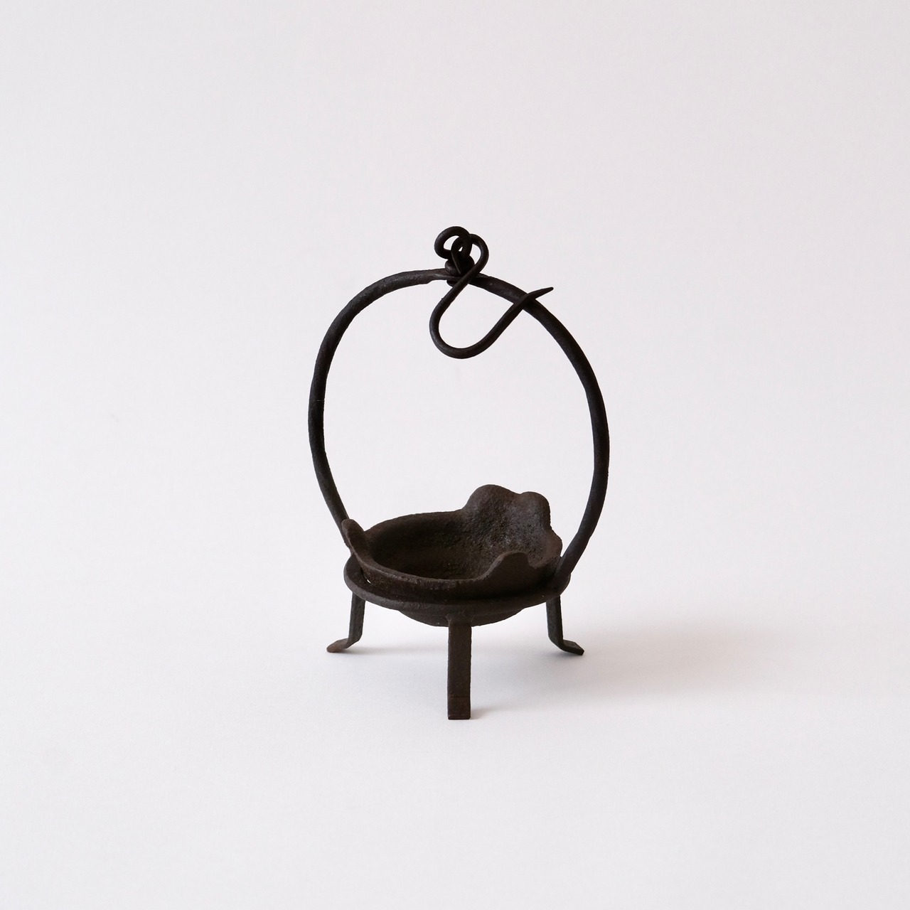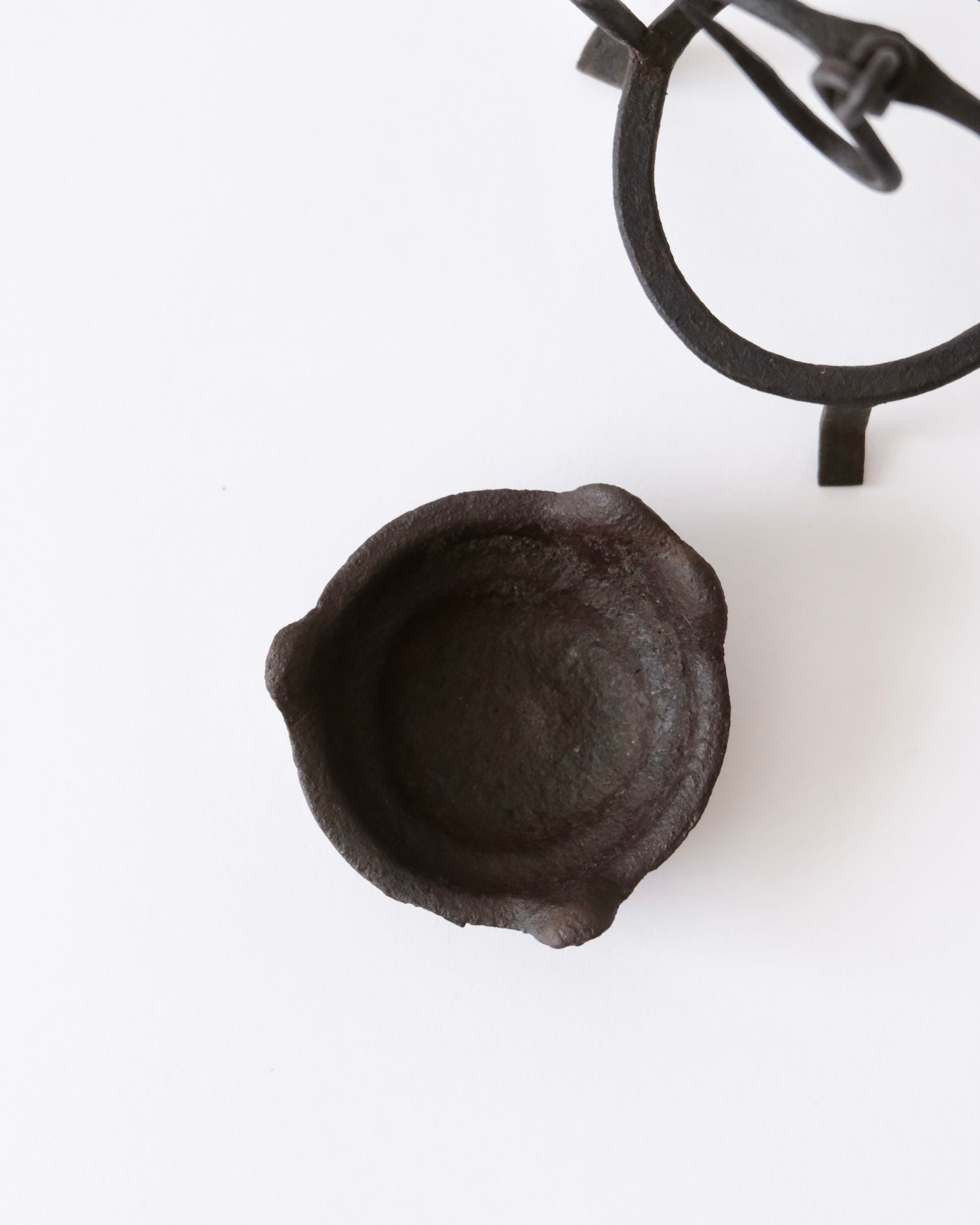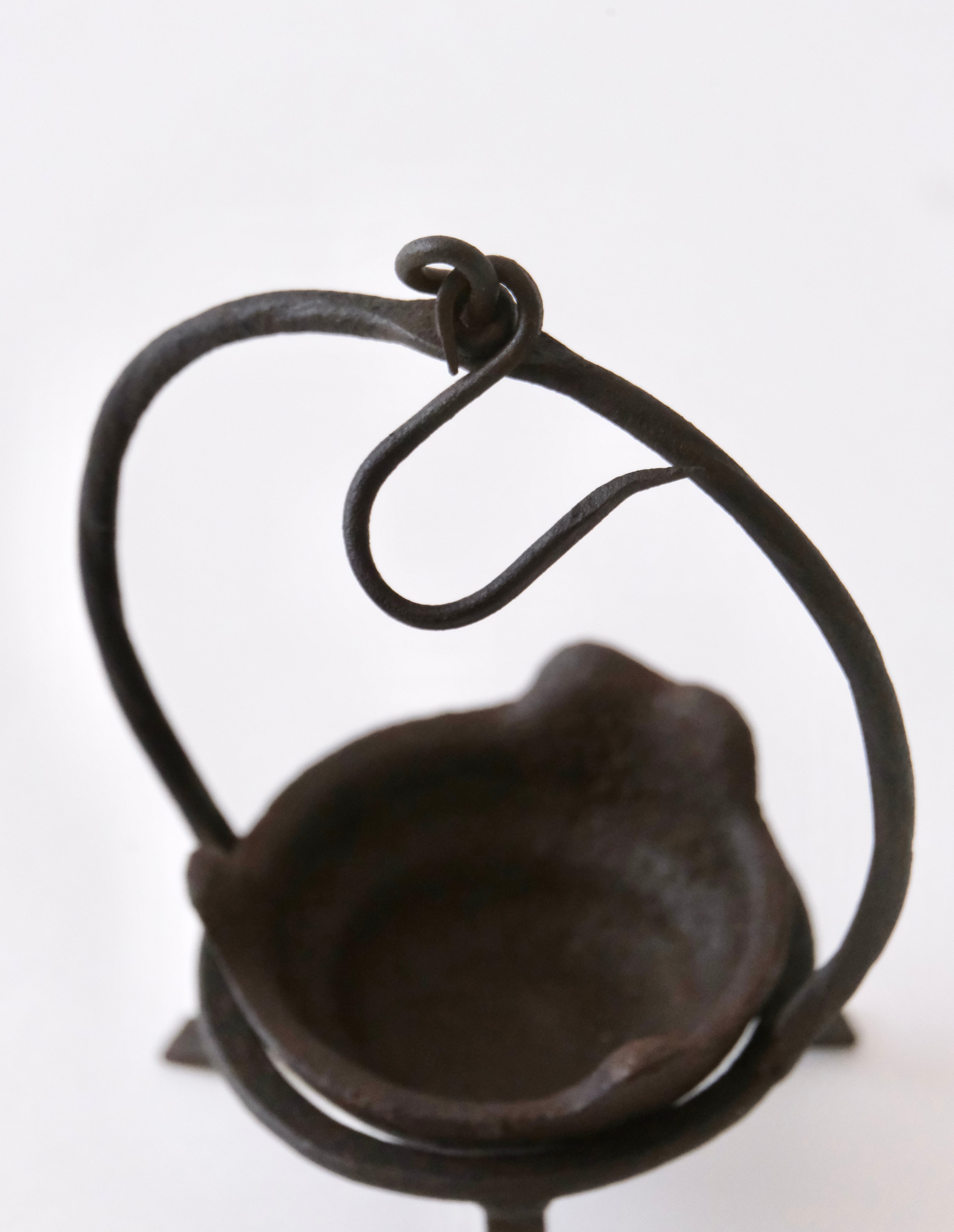 その昔、皿の中に油を入れて照明として用いられた鉄製の道具