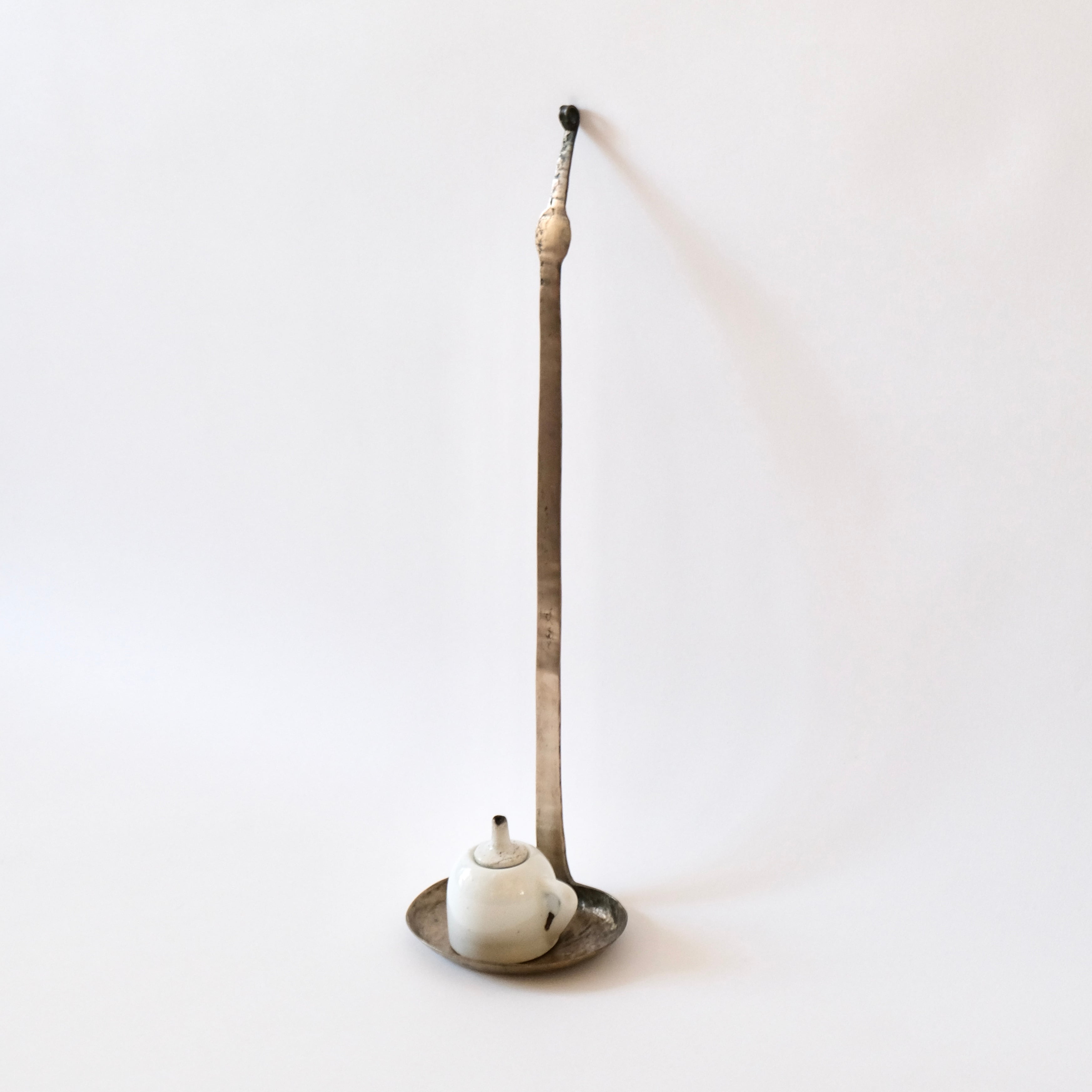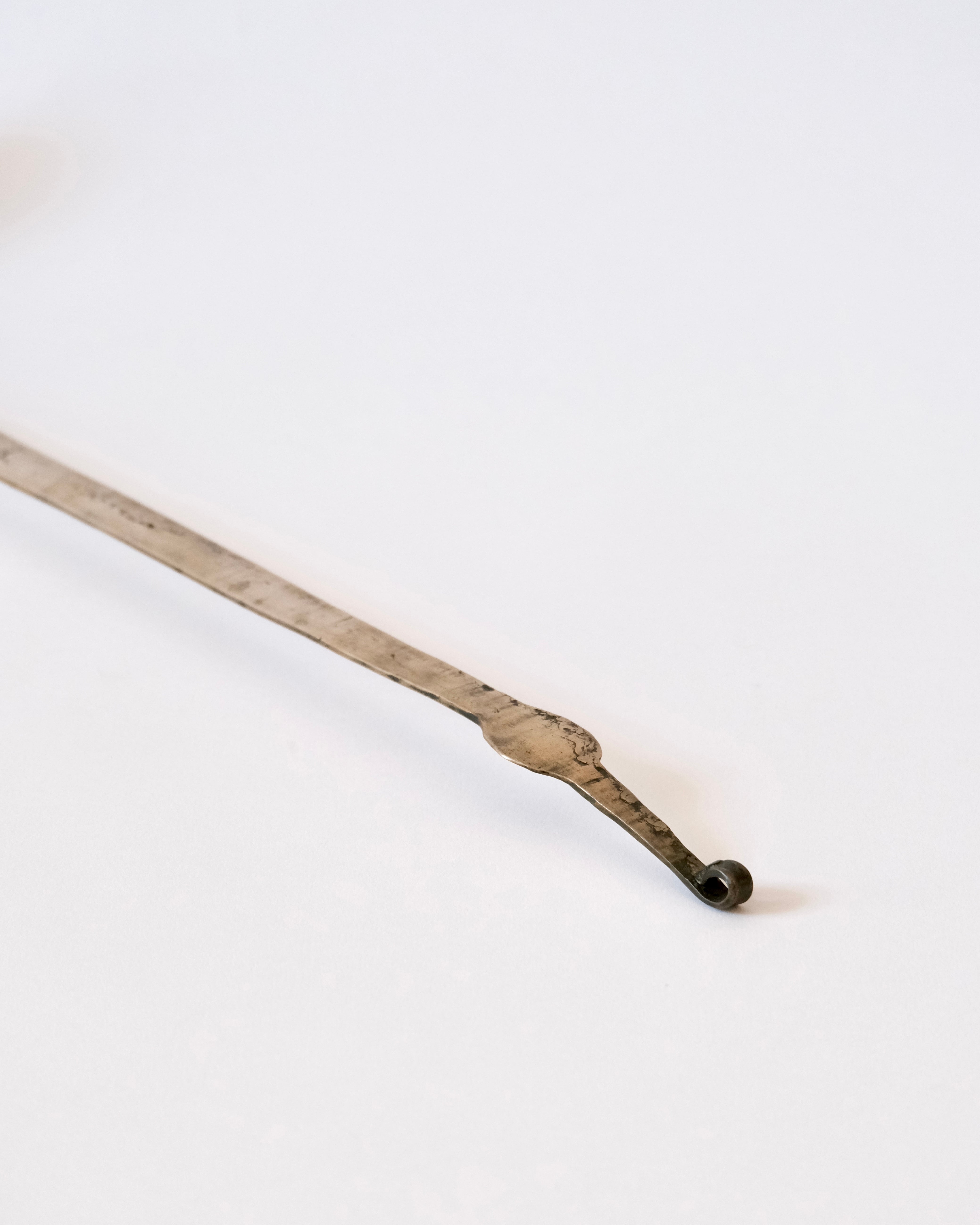 経年により全体的に黒ずみ、わずかに緑青のふいている部分もございますが良い雰囲気です。
