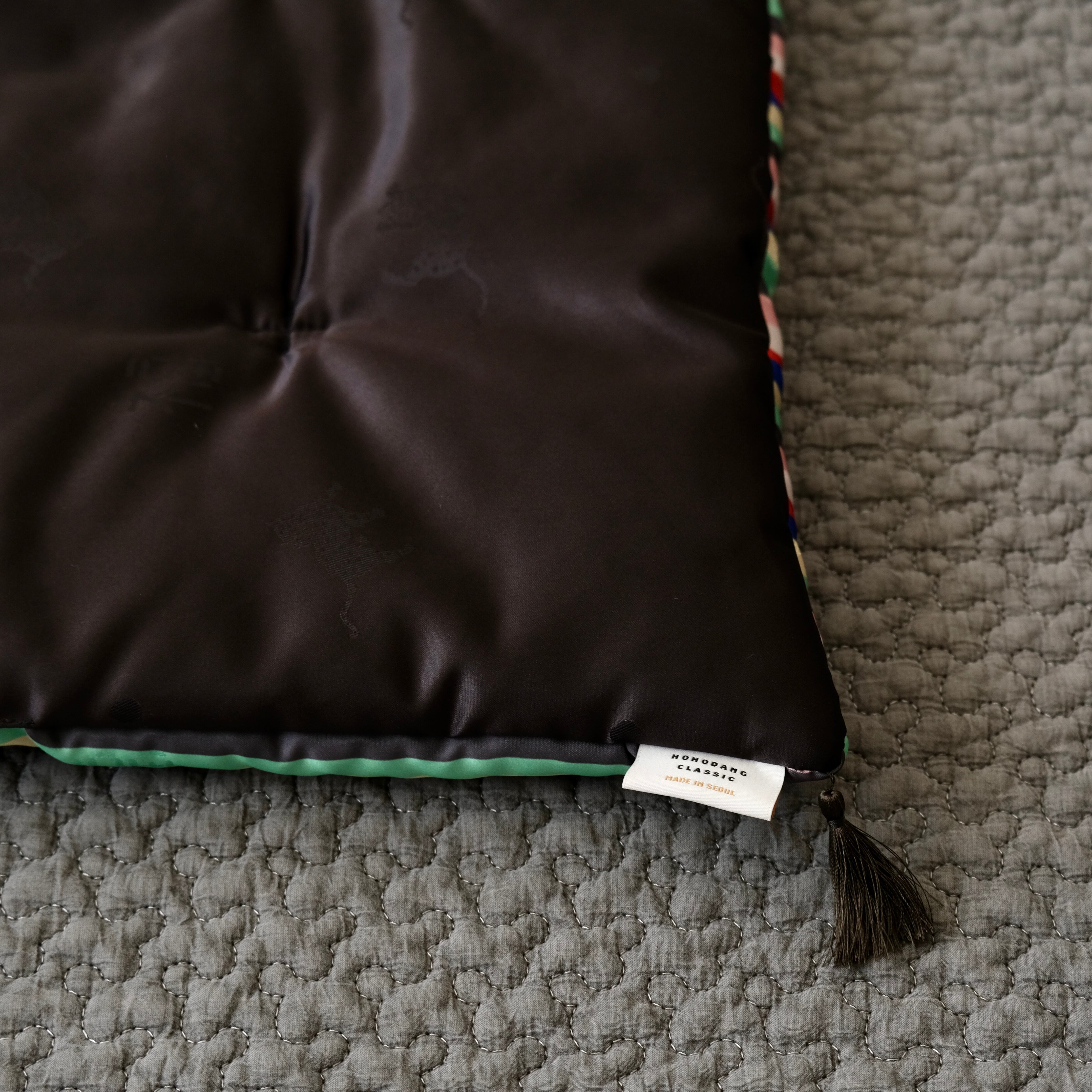 環境に配慮したリサイクルポリエステルを100%使用したeco座布団です。
