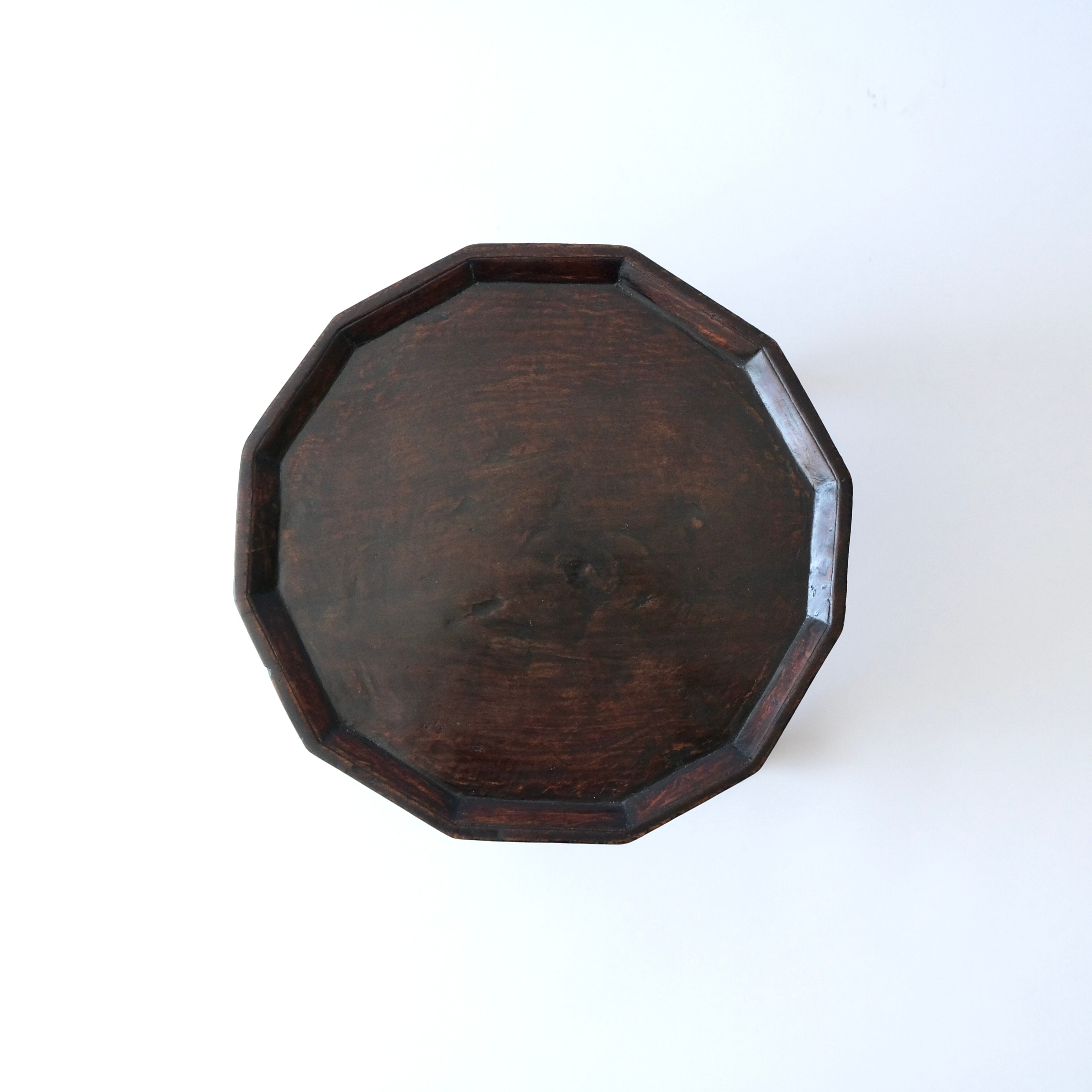 脚と天板のバランスが美しい小ぶりなサイズの薬小盤なのですが、脚と天板をつなぐ雲閣という飾り板の部分に一箇所欠損があります。