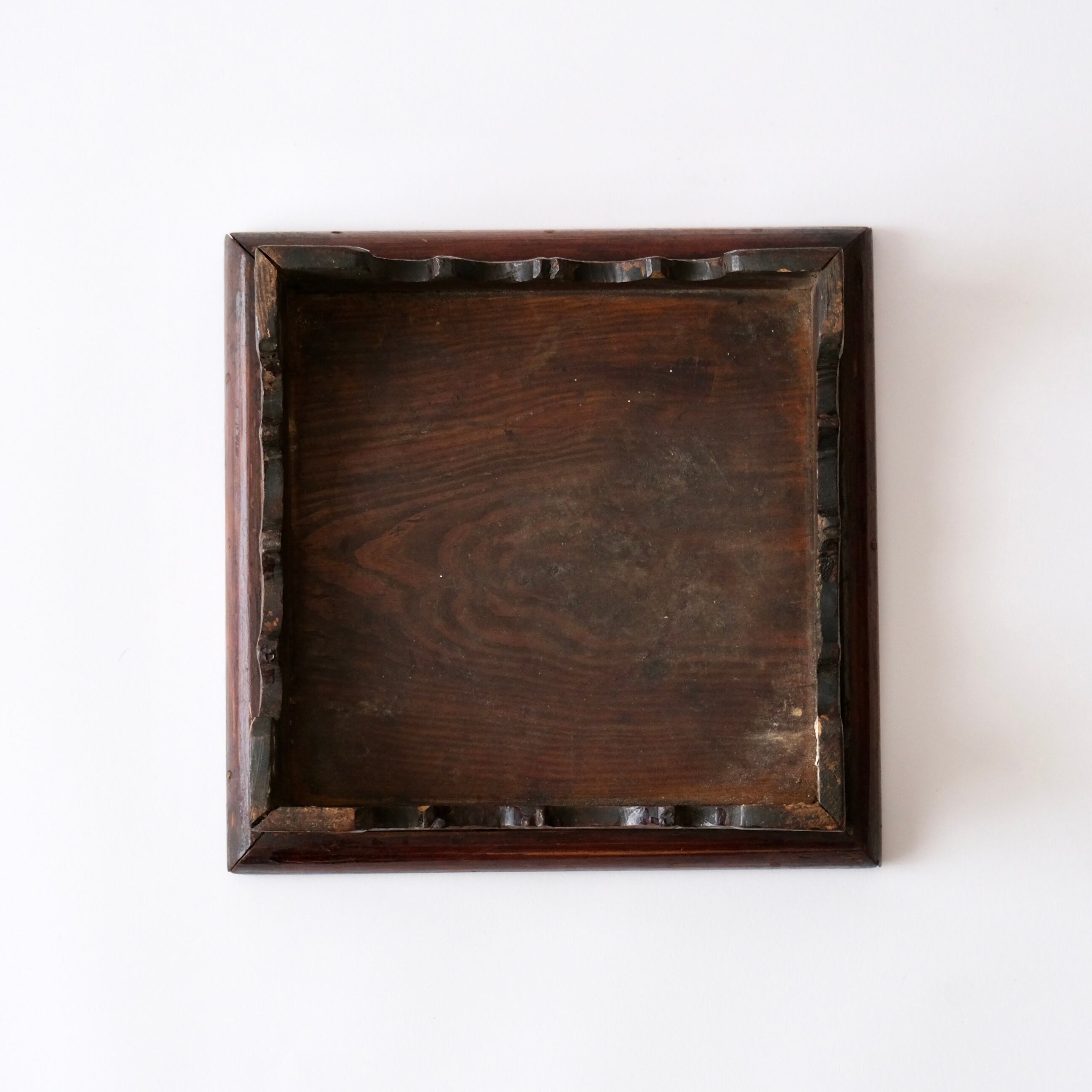歳月を経て板の浮きや傷んでいる箇所、木釘が抜けている部分などもありますが角が取れ、手擦れも美しいお品かと思います。