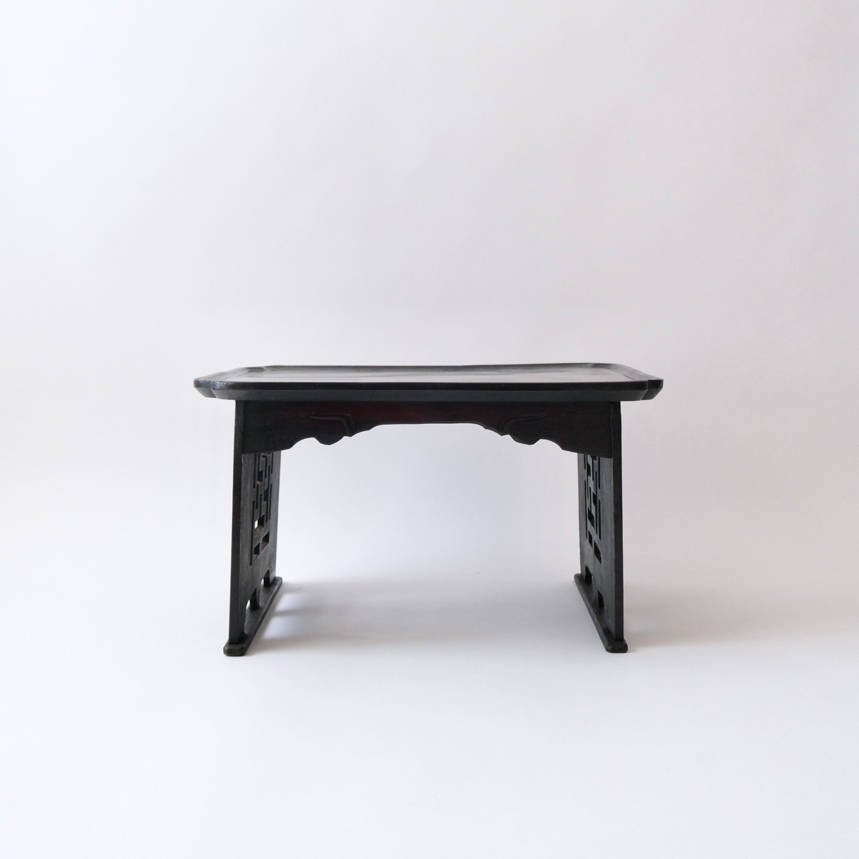 海州盤は四角く、四つ角が花びらのように面取りされているのが特徴で、透かし彫りが施された板状の脚は、産地によりさまざまあるソバンの種類の中で一番華美だとされています。