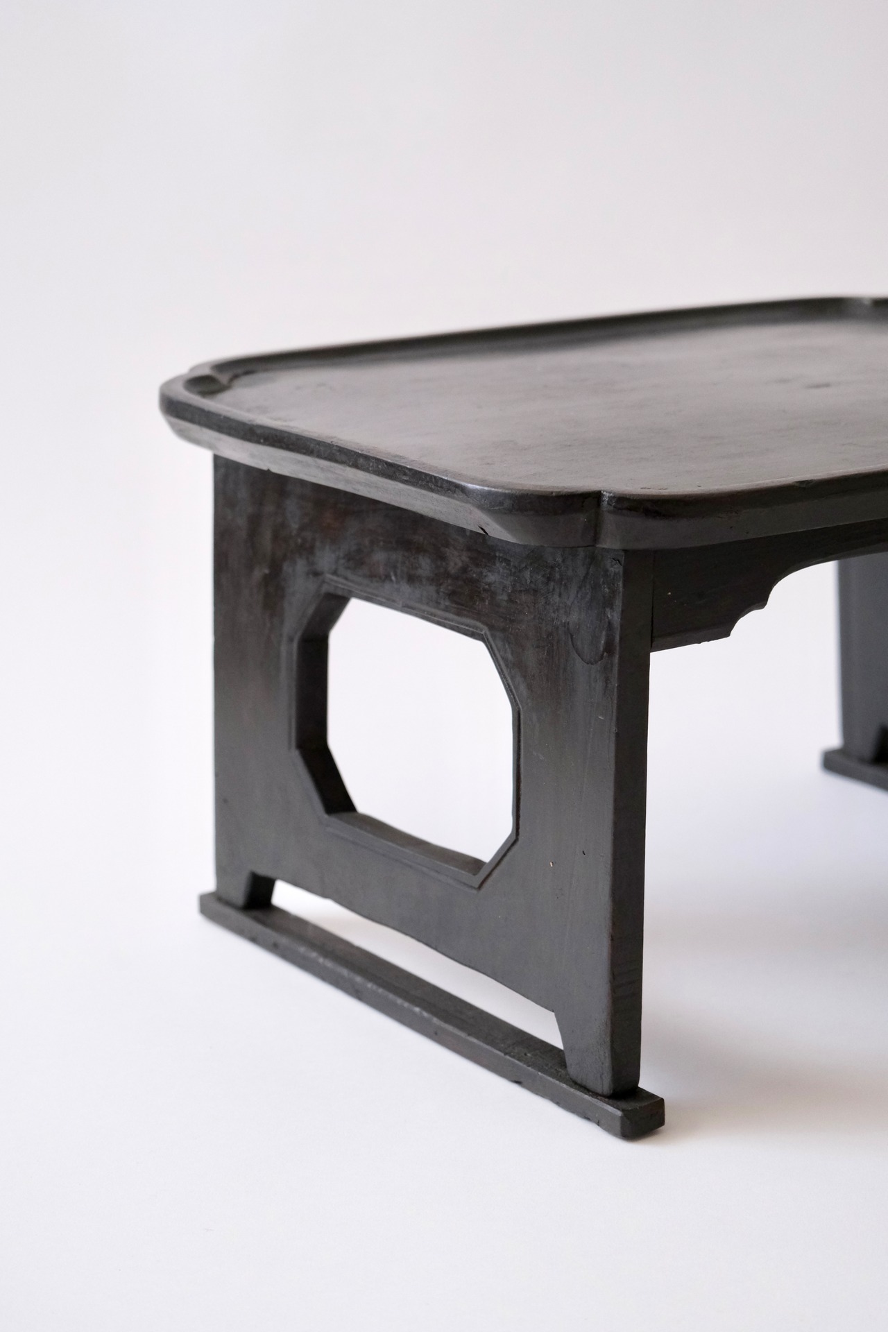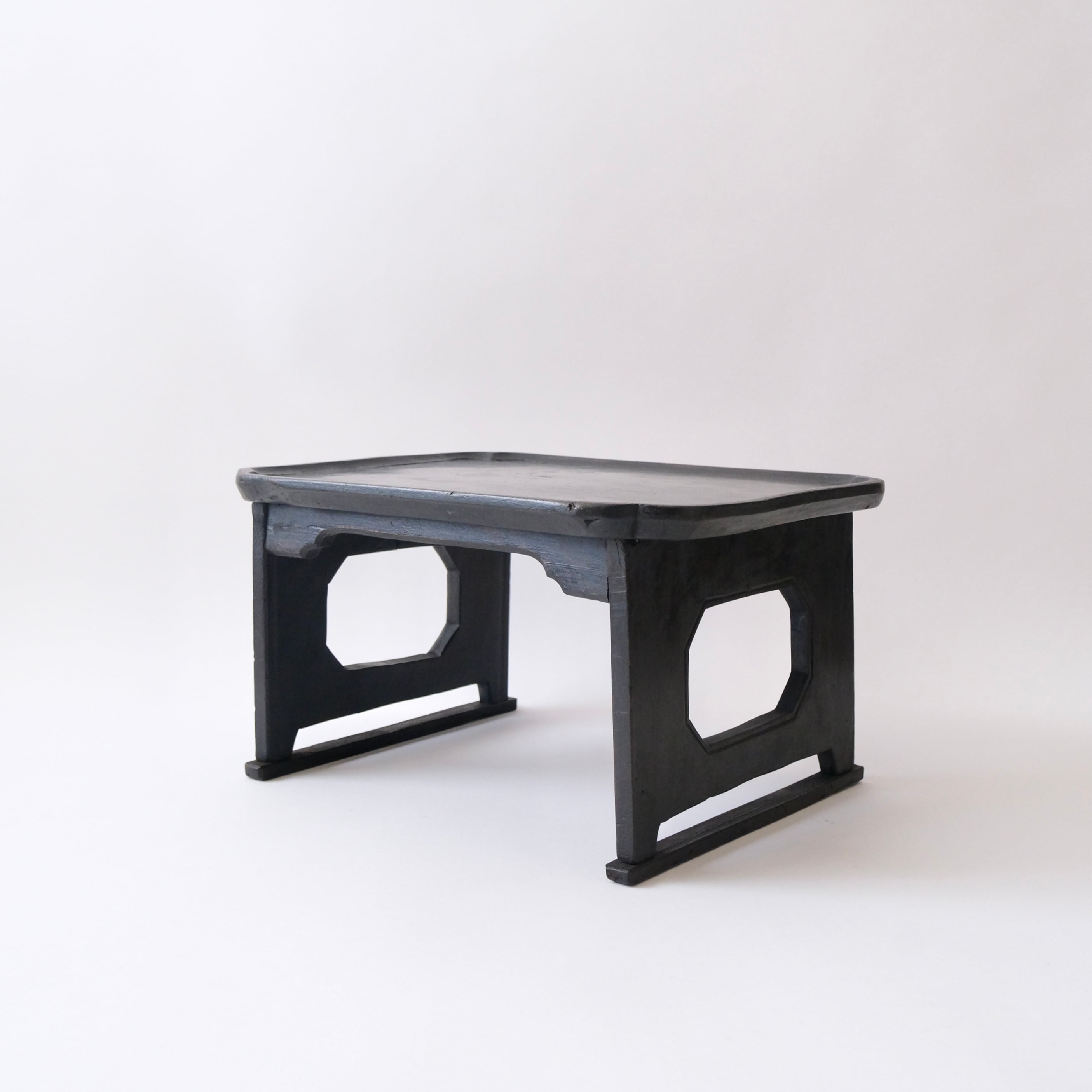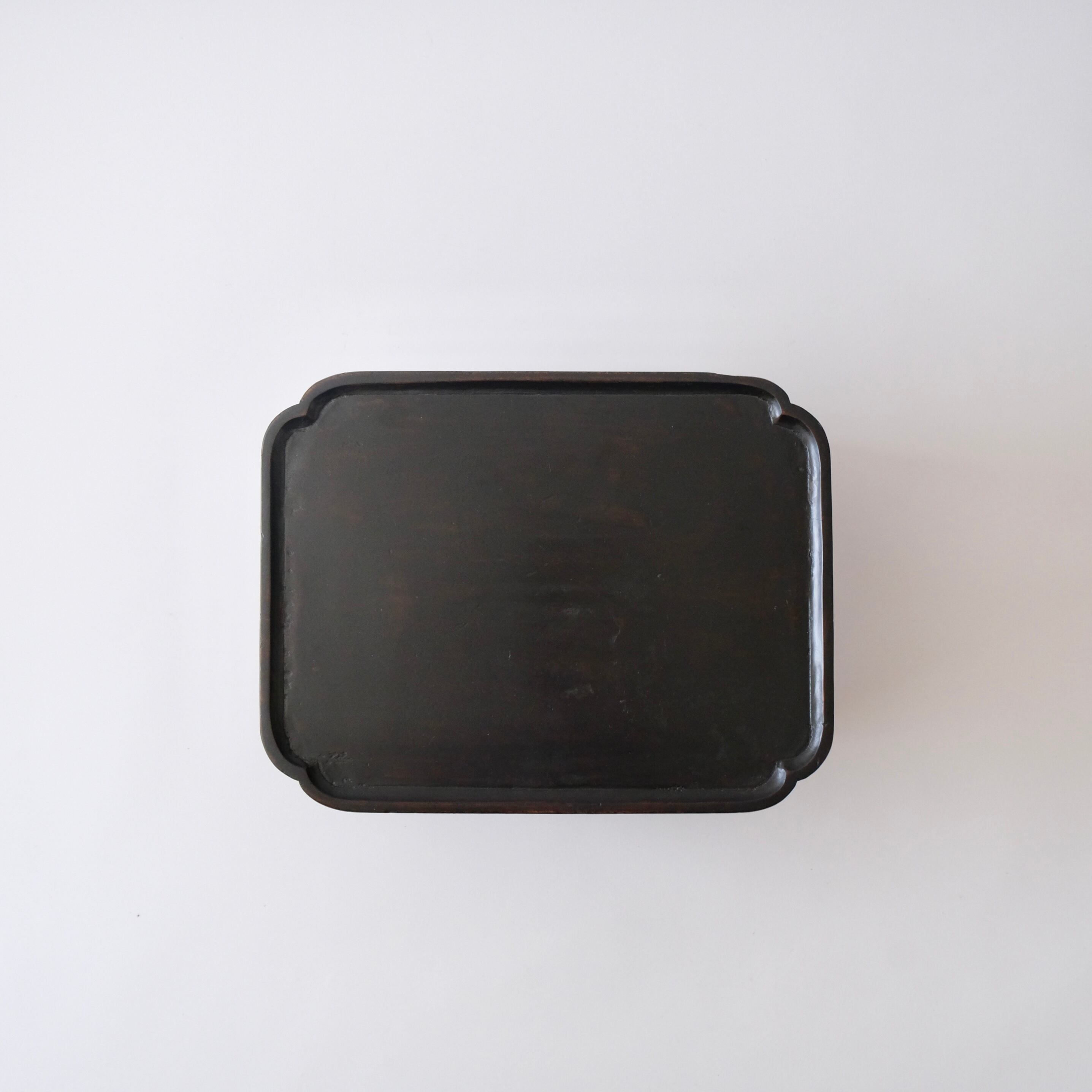 資源が豊富な地域だっただけに、天板も比較的分厚く丈夫で、脚板の中央部分は四角や桃模様などシンプルにくり抜き、海州盤のように多様な構成の補強装飾がなくとも丈夫な小盤として使われてきました。