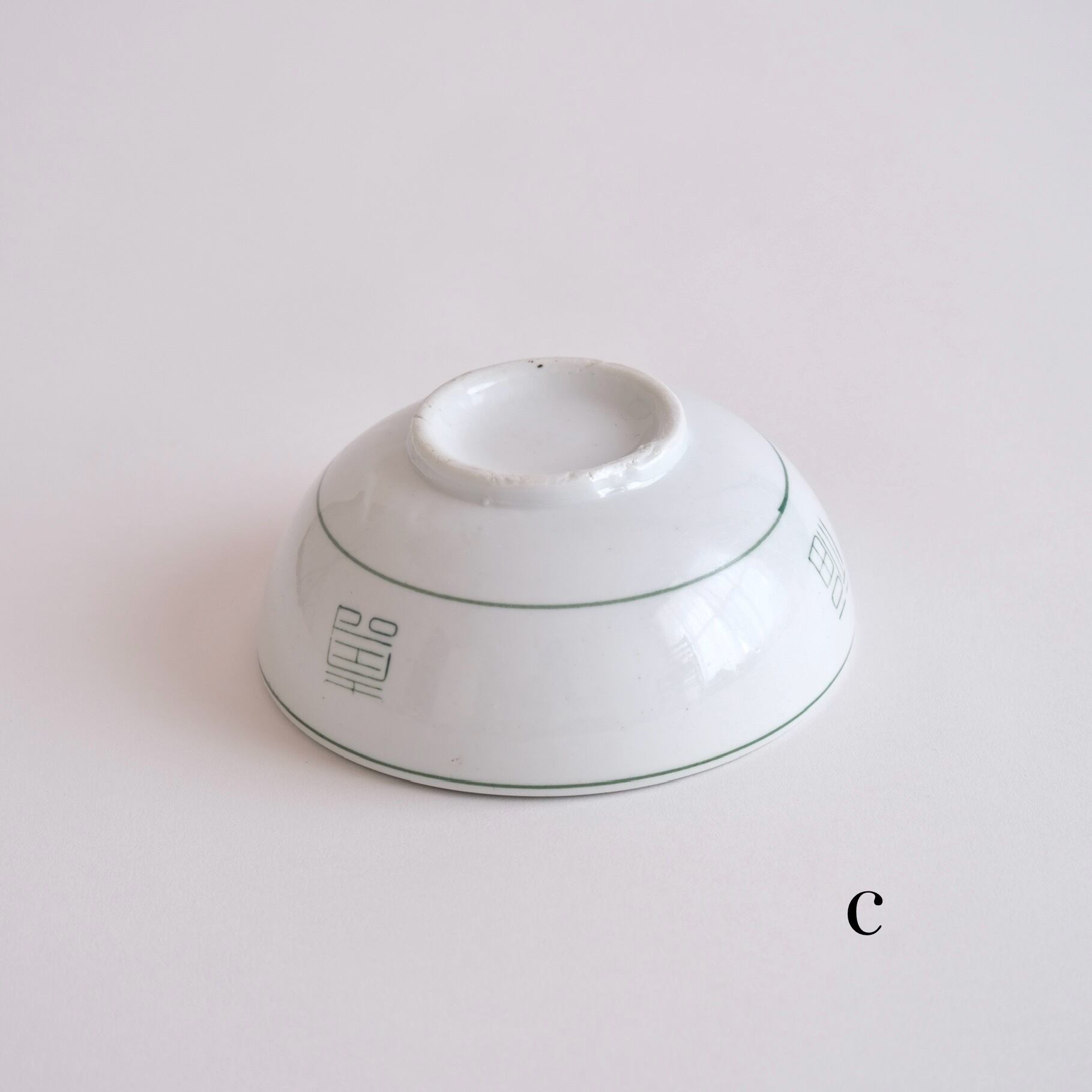 白磁に緑色で福・禄・壽の縁起の良い文字が押されています。