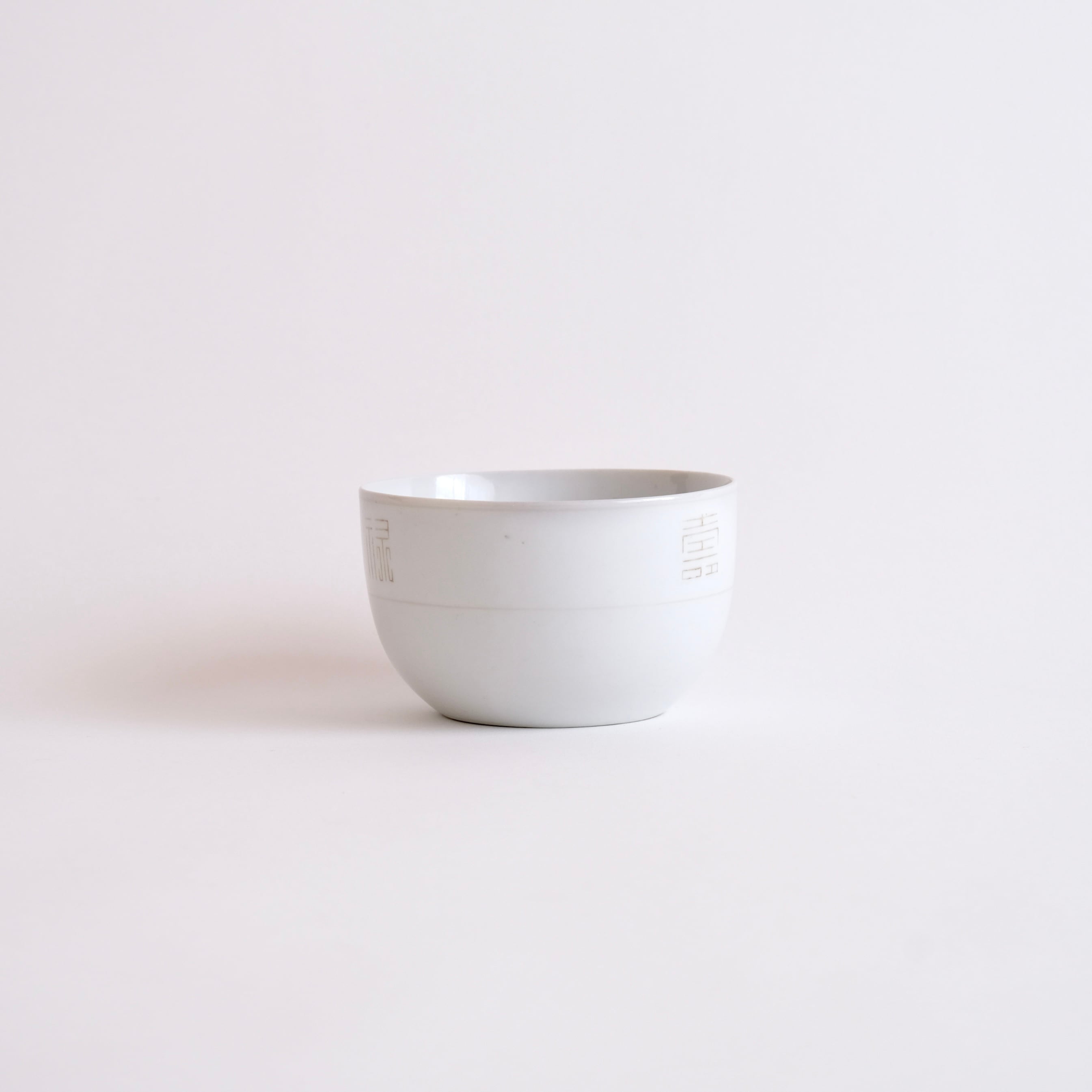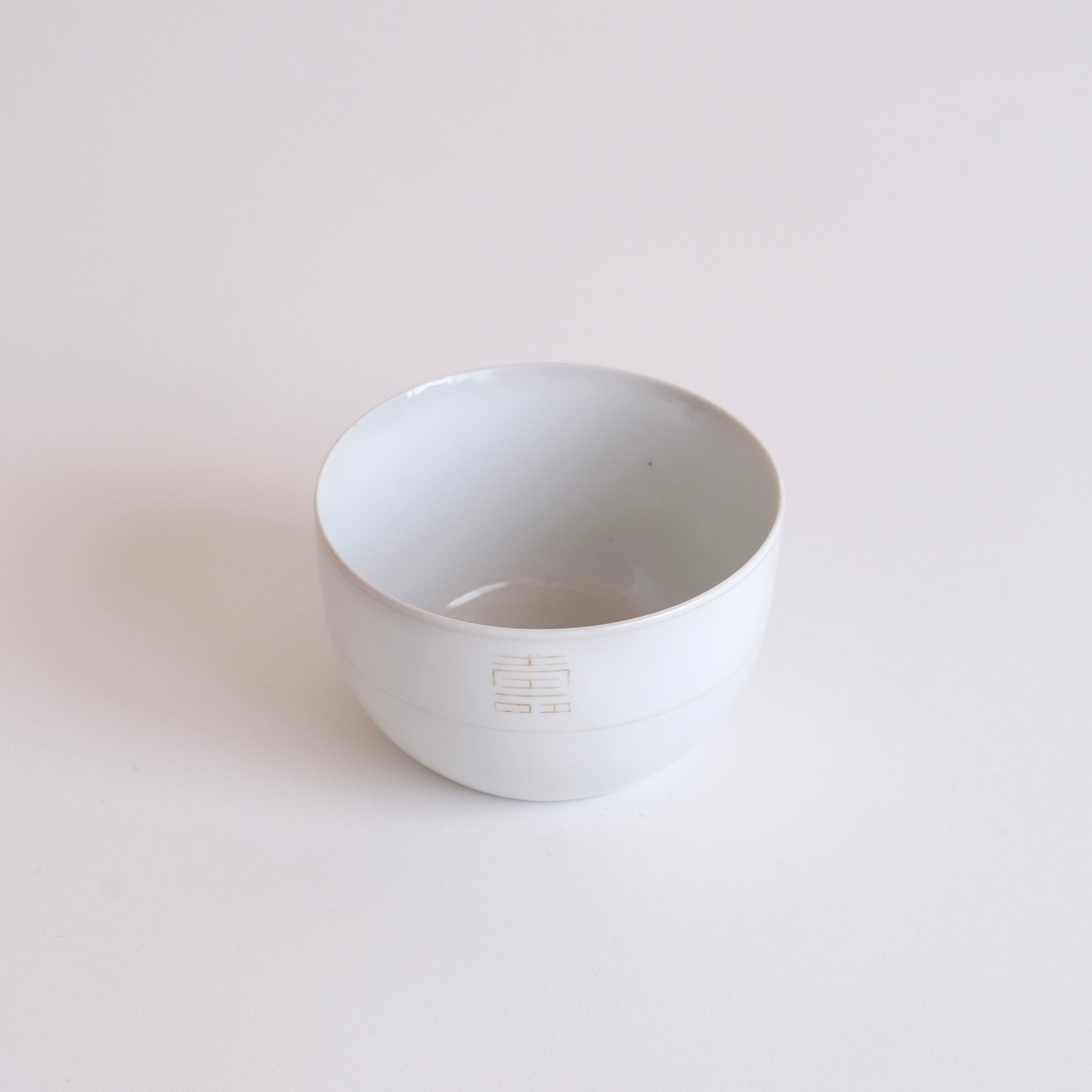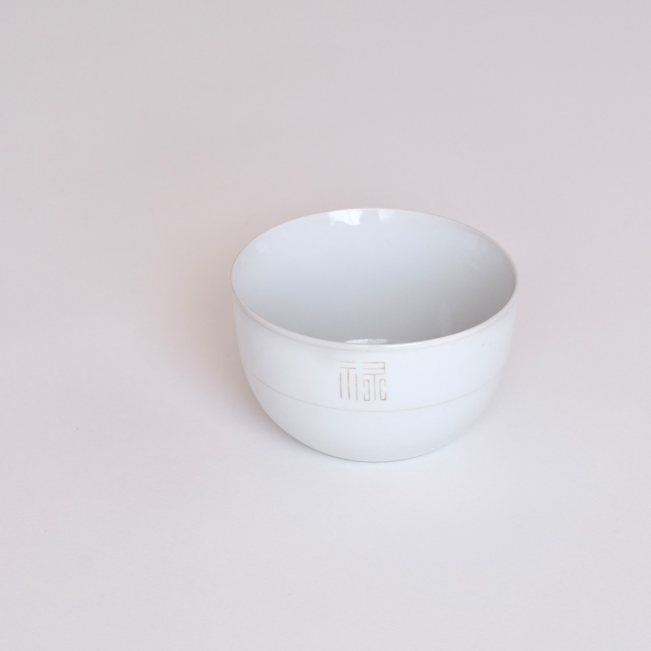 白磁に薄茶色の細い線で福・禄・壽の縁起の良い文字が押されています。